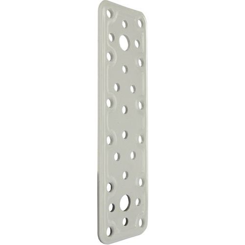 Patte d'assemblage rectangulaire. Connecteur multi-trous. En acier epoxy blanc.