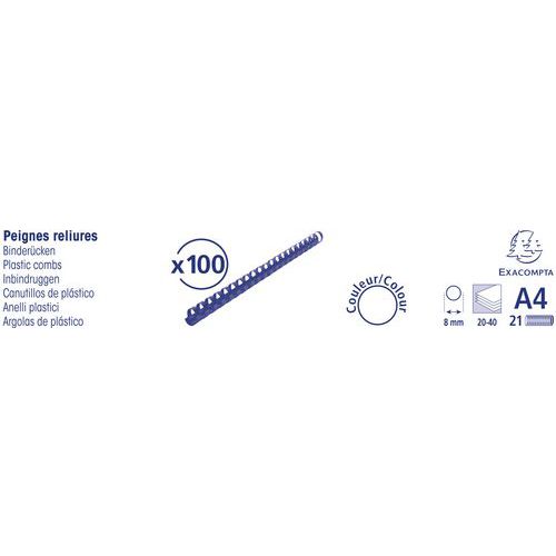 Peignes de reliure plastique, Type: Peignes reliure, Capacité (nb de feuilles): 40, Nb d'anneaux: 21