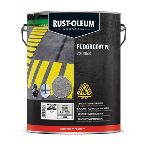Peinture antidérapante 7200NS Floorcoat PU, Peinture finition: Brillant, Contenance: 5 L, Coloris: Gris clair