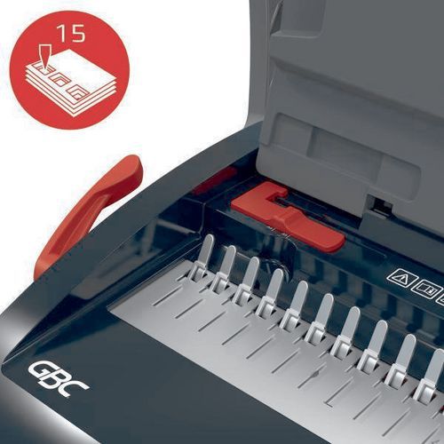 | Intitulé du produit | Perforelieuse manuelle CombBind CB15, Reliure: Anneaux plastique, Capacité (nb de feuilles reliées): 165 |