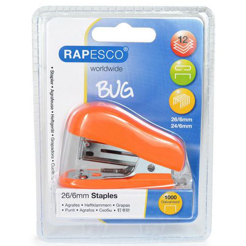 | Intitulé du produit | Petite agrafeuse BUG 24/6, Capacité d'agrafage (nb de feuilles): 12, Longueur: 30 mm, CE: oui, Largeur: 95 mm |