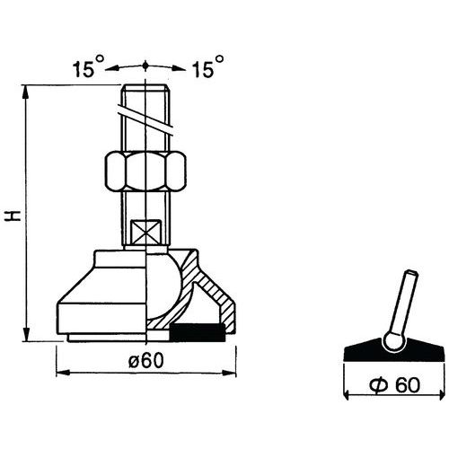 Intitulé du produit Pied réglable inox, Tige matériau: Laiton, Tige longueur: 48 mm, Pied hauteur: 98 mm, Tige filetée Ø: M16