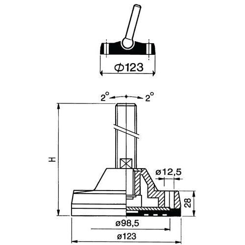 Pied réglable polyamide - Ø 123 mm - 4500 kg - Acier zingué