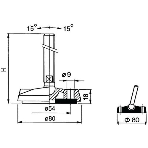 Pied réglable polyamide - Ø 80 mm - 1000 kg - Acier zingué