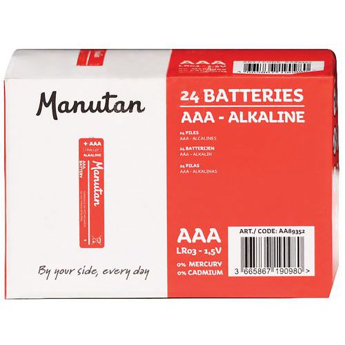 | Intitulé du produit | Pile alcaline AAA/LR03, Type de pile: AAA/LR03, Nb de piles: 24, Tension: 1.5 V |
