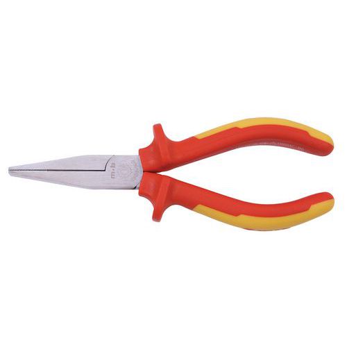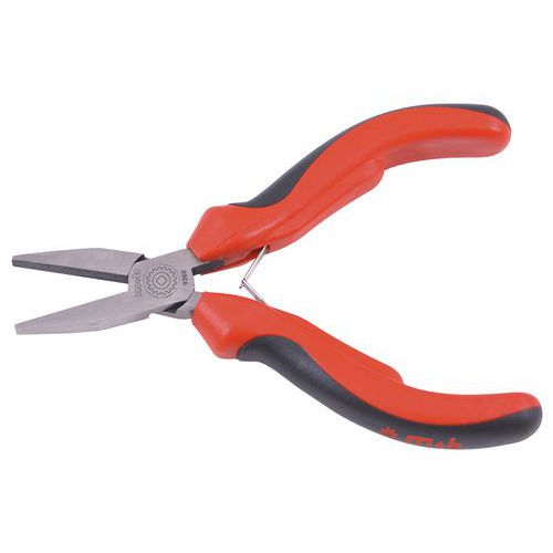 - Pince à bec plat, bec pourvu de stries pour une bonne prise des pièces, très résistante aux torsions subies lors des manipulations, anti-corrosion.