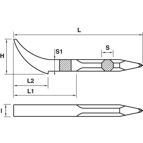- Octogonale ou ronde avec taillant courbé et pointe.
