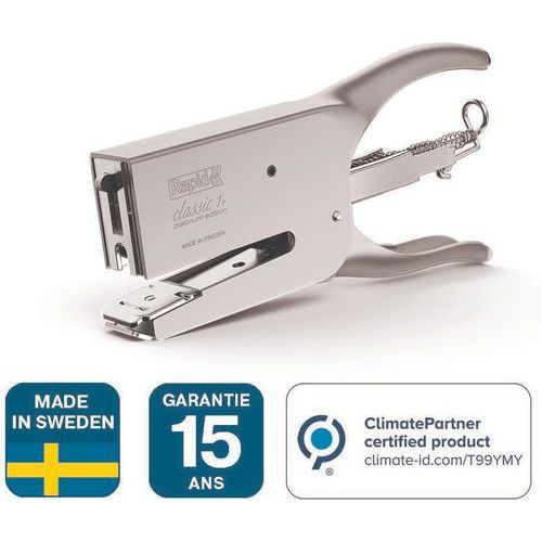| Intitulé du produit | Pince agrafeuse Classic K1, Capacité d'agrafage (nb de feuilles): 50, Longueurs: 182 mm, Largeur: 85 mm |