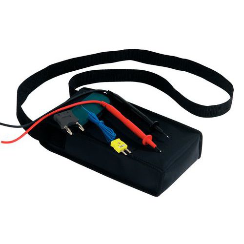 Livrée avec un jeu de cordons de mesure avec pointes de touche, un thermocouple, une sacoche de transport et une notice d'utilisation.