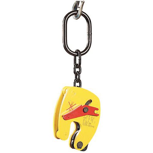 Pince avec bec cranté pour le levage de plaques en acier. Le bec cranté ne marque qu'une face de la charge. Le serrage est proportionnel au poids levé. Un système de sécurité garantit un serrage permanent de la charge grâce auquel cette dernière ne peut se décrocher de manière intempestive. Convient également au retournement de charges.