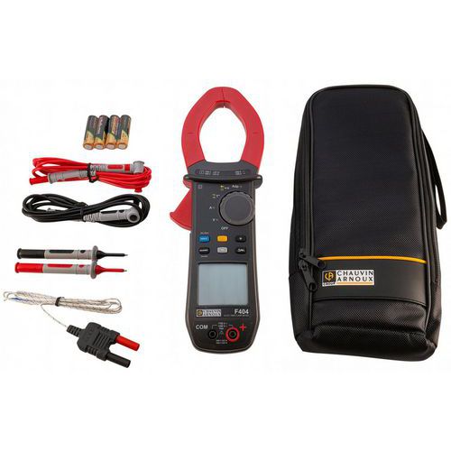 Pince multimètre ampèremétrique TRMS- AC/DC. Détection automatique AC/DC. Mesure des surintensités TrueInrush. Hold, Min, MAX, Mesures reLatives (ΔX) et Différentielles (ΔX/X). F404 adaptée aux applications photovoltaïques. Garantie client : 3 ans