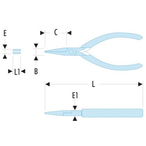 Pinces à becs plats, Réf. Fabricant: 401, Type de bec: Plat, Poids: 80 g, Épaisseur: 0.5 cm