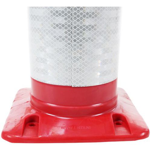 Poteau en matière synthétique flexible revêtu d’un film rétroréfléchissant (classe II) qui retrouve sa position initiale après une collision. Solution idéale pour les zones sensibles aux collisions, comme les entrées et sorties, parkings, sorties de secours, sites industriels, etc. Disponible avec ou sans support d’informations en matériau synthétique de Ø 4 cm. Hauteur : 9 cm. Diamètre : 16 cm • Dim. du socle : 25 x 25 cm.