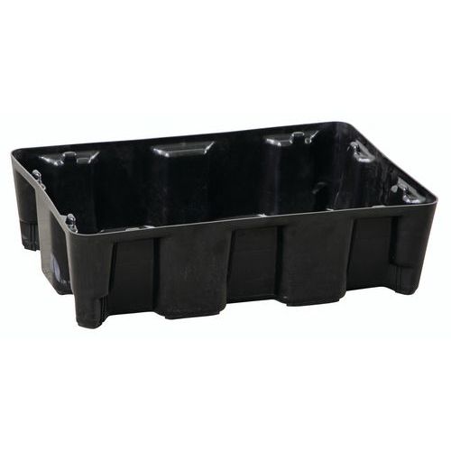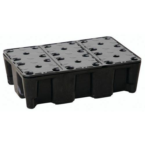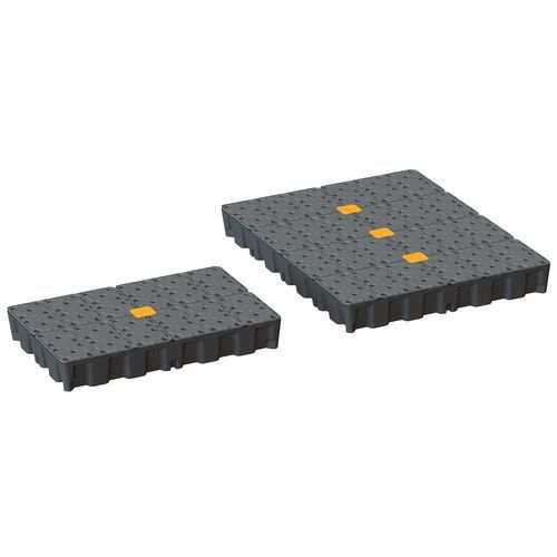Bacs empilables en polyéthylène. Disponibles en différentes tailles, pour constituer une plate-forme de rétention. Caillebotis robustes et amovibles avec surfaces anti-dérapantes. Les éléments de liaison (accessoires) assurent la modularité de l’installation. Poste combiné de stockage et de soutirage