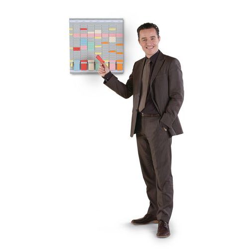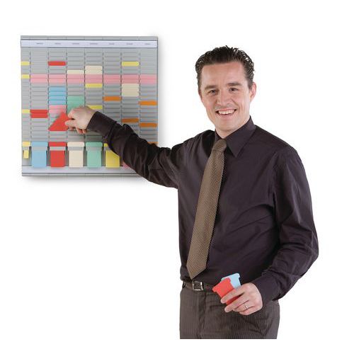 Fourni avec : 7 panneaux (20 ou 35 cases) avec index et ensemble de fixations, 800 fiches de 48 mm de large, un assortiment de 100 fiches vertes de 15 mm de large