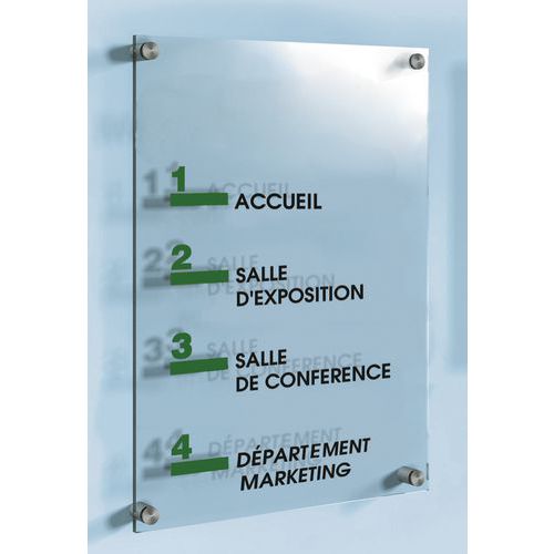 - Les plaques en acrylique transparent et leurs supports en aluminium donnent à votre entreprise une image professionnelle.