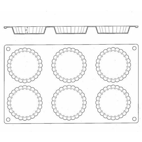 | Intitulé du produit | Plaque de 6 tartelettes cannelées en silicone Gastroflex, Hauteur: 1.8 cm, Longueur: 300 mm |