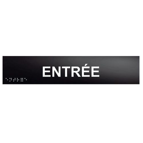 | Intitulé du produit | Plaque de porte en braille et en relief Entrée, Adhésif: non, Matériau: PVC, Type de panneau: Indication |