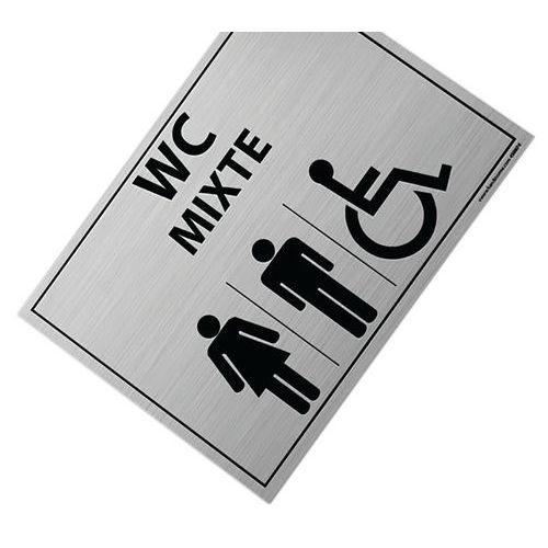 Cette plaque gravée vous permettra d'indiquer efficacement l'accès à des toilettes mixtes, disponibles pour les femmes, les hommes et les personnes à mobilité réduite.