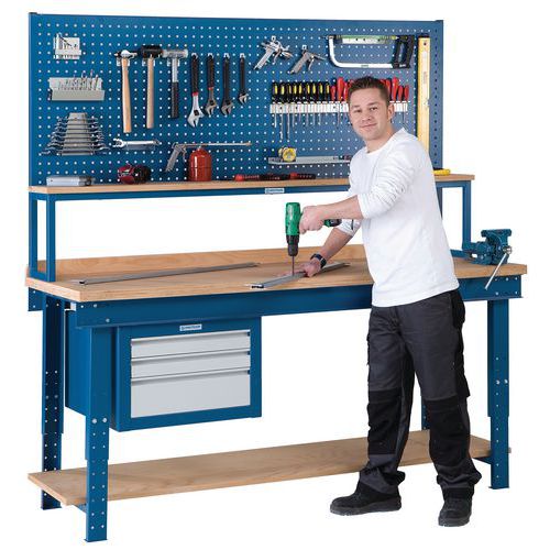 Gardez votre établi libre de tous outils, pièces et accessoires grâce à ce panneau vertical. Rangez vos outils sur le panneau destiné à cet effet à l’aide des crochets.