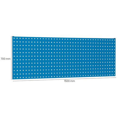 Plaque perforée et support tablette pour établi, Largeur: 1500 mm, Hauteur: 700 mm, Coloris: Bleu, RAL: 5009 Plaque perforée et support tablette pour établi, Largeur: 1500 mm, Hauteur: 700 mm, Coloris: Bleu, RAL: 5009