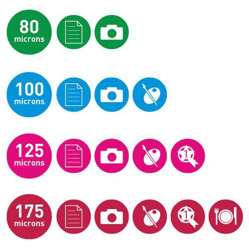 - Compatible avec des pochettes de 75 à 175 microns.