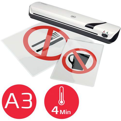 | Intitulé du produit | Plastifieuse Inspire+ A3, Document ép. maxi: 0.5 mm, Document format: 297 x 420 mm (A3), Hauteur: 60 mm |