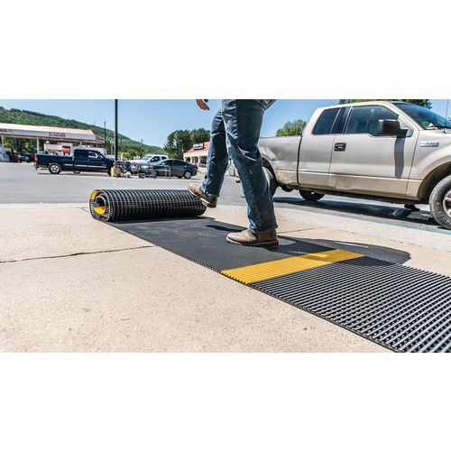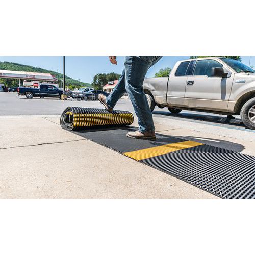 Caillebotis souple Crossgrip Line - marquage alterné noir/jaune - En rouleau - Plastex