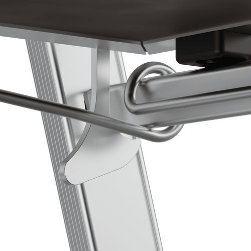 Légère, compacte et polyvalente, cette plate-forme concentre toutes les qualités requises par un poste de travail individuel professionnel. Son garde-corps pliant permet un stockage encore plus aisé.