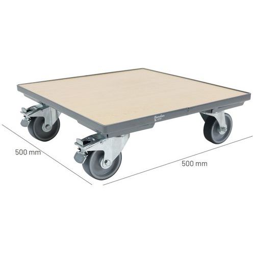 Plateau roulant bois, Force: 400 kg, Plateau largeur: 500 mm, Plateau longueur: 500 mm, Roulette Ø: 100 mm