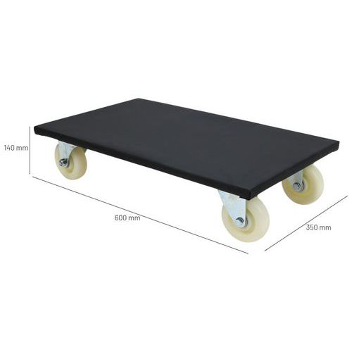 Plateau roulant bois - Capacités 300 et 500 kg - Manutan Expert Plateau roulant avec revêtement tissu noir antidérapant. Ce produit est conçu pour un usage professionnel.