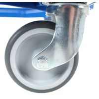 - Roues de 100mm de diamètre en PA + bandage caoutchouc : silencieuse sur tout type de sol, pas de vibration, confort d'utilisation, ne gèle pas en chambre froide.