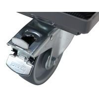 - S'adapte parfaitement sous tous les contenants de taille moyenne couramment utilisés. Ses quatre roulettes robustes, conçues pour le transport, lui confèrent une excellente maniabilité sur tous les types de sols, souples ou durs, aussi bien à l'intérieur qu'à l'extérieur.