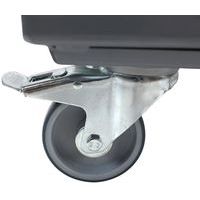 - Équipé de quatre roulettes robustes à haute capacité de charge (deux pivotantes munies de freins et deux fixes).