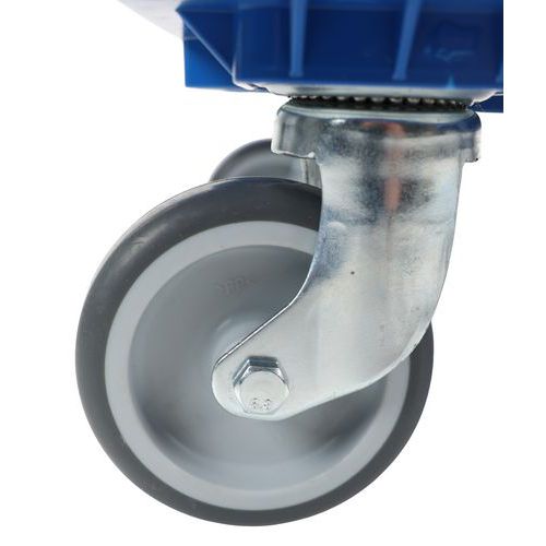 - Equipé de 4 roues pivotantes sans freins avec bandage caoutchouc.