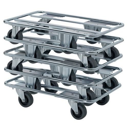 - Plateau roulant acier tubulaire pour charges lourdes empilables et robustes avec des bords arrondis.