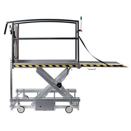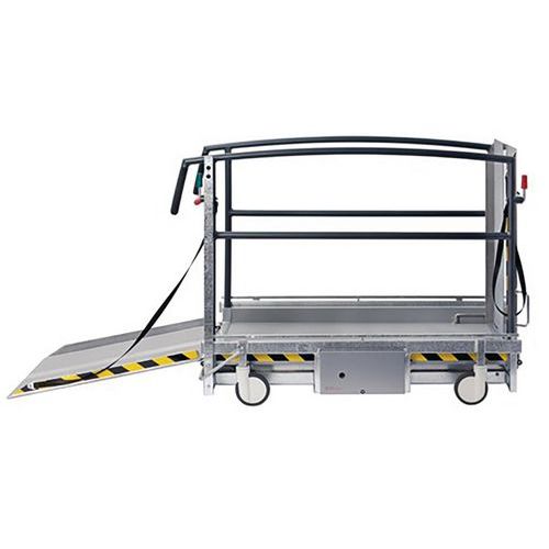 Cette plateforme est particulièrement simple à utiliser puisqu’elle ne nécessitera qu’une seule personne. Stable et sécurisante, cette plateforme dispose d’un système d’arrêt d’urgence, les garde-corps présents des deux côtés permettront de rassurer la PMR qui l’utilisera.