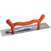 Platoir denté manche plastique 2 mains lame inox, Largeur: 500 mm, Longueur: 120 mm, Usage: Finition