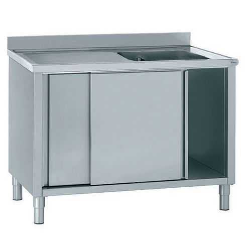 | Intitulé du produit | Plonge adossée sur placard, Matériau: Inox, Hauteur: 90 cm, Largeur: 120 cm, Profondeur: 70 cm |