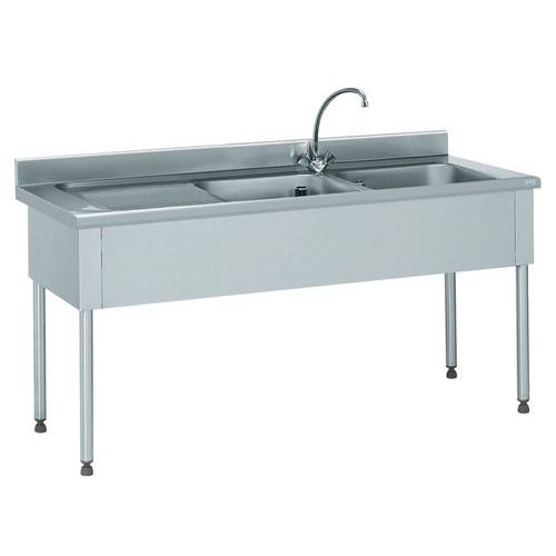 - Piètement en tube en acier inoxydable alimentaire diamètre 45 mm avec vérins réglables, en retrait de 80 mm à l'arrière