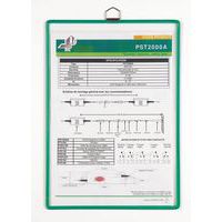 Poche à anse - A4 - portrait - petit coté. Une solution à suspendre pratique pour exposer facilement tout type de document. Anse métal chromé intégrée. Pour un affichage portrait. Ouverture petit coté avec insertion par le haut Disponible en plusieurs formats et couleurs. Le cadre en fil d'acier exclusif Tarifold renforce la poche et lui permet de résister à un usage quotidien intensif. Le cadre coloré met en valeur l'information et la rend identifiable. Qu'il s'agisse d'afficher des documents ISO, des informations sur la qualité, des horaires, des prix, des schémas ou des menus. les utilisations de cette poche à suspendre sont infinies.