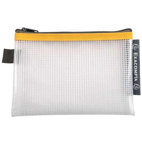 La pochette à fermeture éclair d'Exacompta est composée en plastique EVA, un matériau courant dans l'emballage, reconnu pour sa résistance et à la fois sa souplesse, difficile à déchirer, facile à transporter.