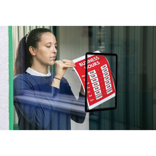 Intitulé du produit Pochette-cadre d'affichage Magneto spécial vitre, Adhésif: oui, Matériau: PVC, Hauteur: 317 mm