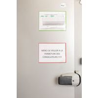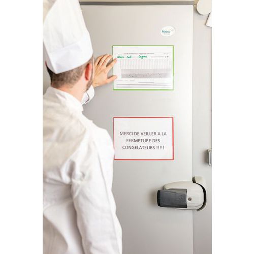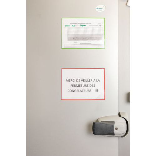 Pochettes d'affichage magnétique Kang Easy Load se fixe sur toutes les surfaces métalliques. Dos entièrement magnétique, tenue irréprochable. Ouverture sur 2 côtés pour une insertion facile des documents. Fermeture coin Easy load : pratique et efficace pour insérer et extraire les documents. Installation simple et rapide, sans vis ni clou, se retire sans laisser de traces. Utilisation portrait et paysage. Solution d'affichage à utiliser sur les machines, portes, tableaux métalliques, réfrigérateurs… Poche en PVC avec dos magnétique. Peut contenir jusqu’à 10 feuilles de papier 80 g. Fonds entièrement vert. Fabriqué en UE