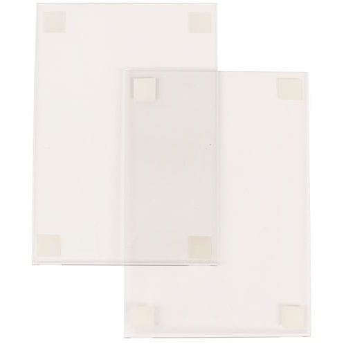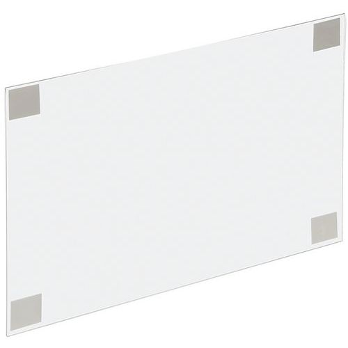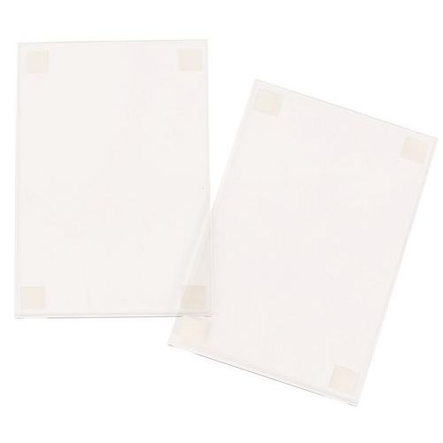 Pochette d'affichage transparente semi-rigide avec pastilles de ruban adhésif. Utilisation en format portrait ou paysage. Fixation simple et rapide sur tout support lisse. Document facile à insérer via ouverture sur le côté.