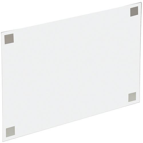 Pochette d'affichage transparente semi-rigide avec pastilles de ruban adhésif. Utilisation en format portrait ou paysage. Fixation simple et rapide sur tout support lisse. Document facile à insérer via ouverture sur le côté.