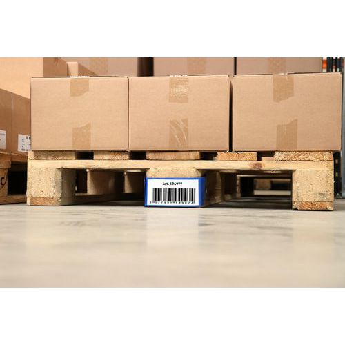 | Intitulé du produit | Pochette d'identification logistique pour pieds de palette, Coloris: Bleu, Largeur: 100 mm, Hauteur: 72 mm |