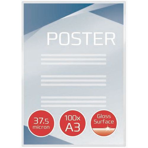 | Intitulé du produit | Pochette de plastification A3, Épaisseur: 75 µm, Format: 297 x 420 mm (A3), Largeur: 303 mm, Longueurs: 426 |
