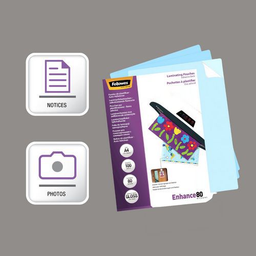 Pochette de plastification dos adhésif A4 - 80µ - Fellowes