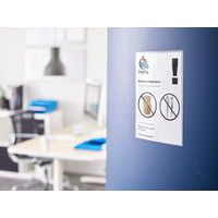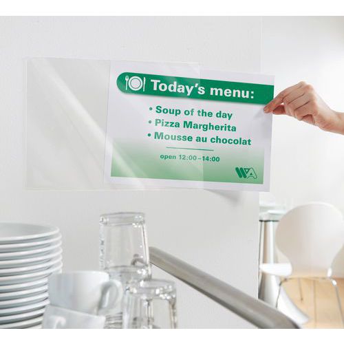 Pochette murale adhésive transparente, très pratiques pour la mise à jour régulière d'informations.